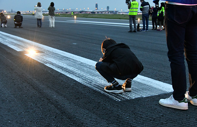 成田空港、開港以来初の早朝滑走路ウォーク 倍率17倍超、タイヤ痕など楽しむ