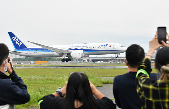 成田空港のA滑走路に着陸するANAのハノイ発NH898便=22年5月21日 PHOTO: Yusuke KOHASE/Aviation Wire