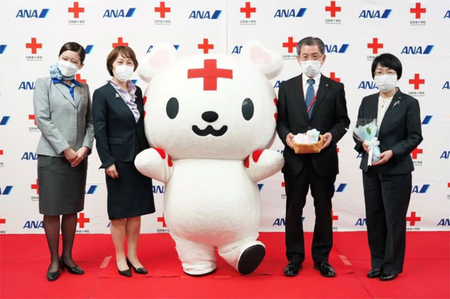 全日本空輸(ANA/NH)を中核とするANAグループは、全国51カ所の病院にスズランの花とオリジナルのしおりをプレゼントした。今年で67回目となる恒例行事で、贈呈式を日本赤十字社(東京・港区)で5月25日に開いた。