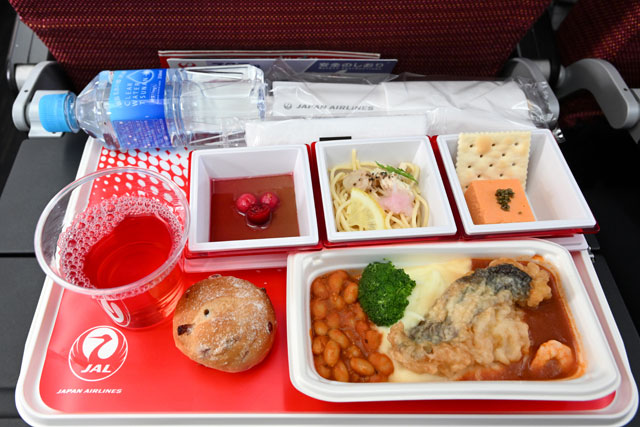 JALの787就航10周年チャーター便のエコノミークラスで提供された機内食=22年5月28日 PHOTO: Tadayuki YOSHIKAWA/Aviation Wire