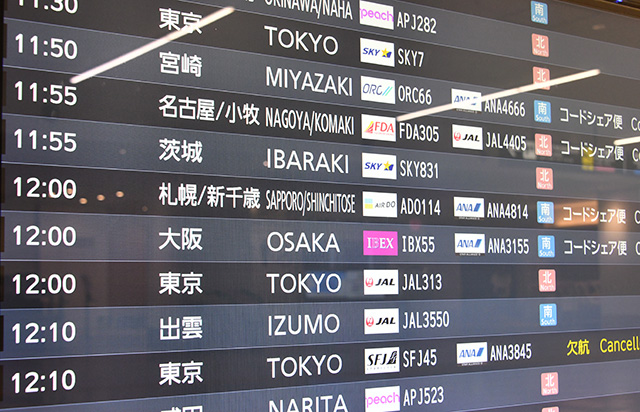 エア・ドゥの札幌行きHD113便初便を示す福岡空港の出発案内=22年7月1日 PHOTO: Yusuke KOHASE/Aviation Wire