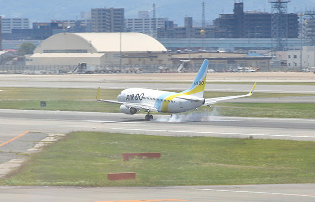 福岡空港に着陸するエア・ドゥの札幌発HD114便初便=22年7月1日 PHOTO: Yusuke KOHASE/Aviation Wire