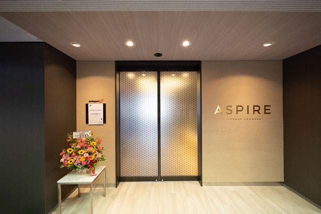 スイスポートが成田にオープンするASPIREラウンジのエントランス=22年7月28日 PHOTO: Tatsuyuki TAYAMA/Aviation Wire