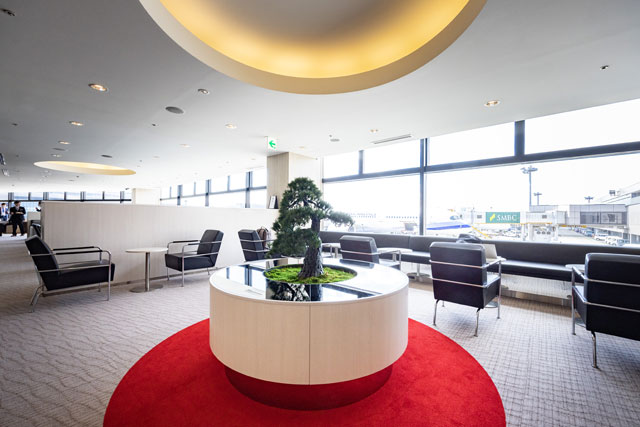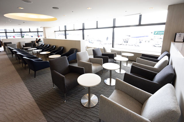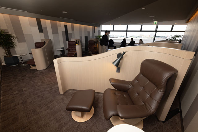 スイスポートが成田にオープンするASPIREラウンジの窓側席=22年7月28日 PHOTO: Tatsuyuki TAYAMA/Aviation Wire
