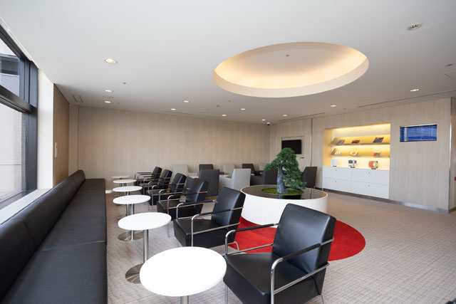 料理や飲み物を楽しめるバーコーナーやビュッフェゾーン、集中して仕事をする際に適したビジネスゾーン、静かに過ごせるクワイエットゾーン、シャワールームなどを備えるリフレッシュゾーンを用意する。バーコーナーのカウンターは、ASPIREのロゴ「A」をイメージした三角形のカウンターを設けた。