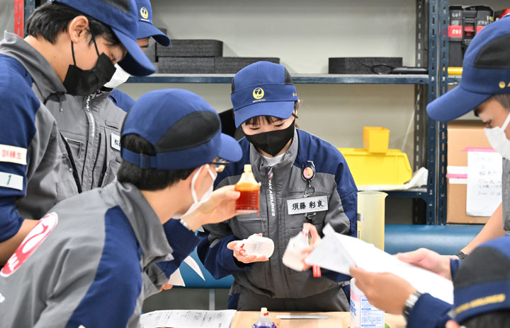 技能五輪に出場するJALECの須藤さん(中央)ら=22年7月27日 PHOTO: Tadayuki YOSHIKAWA/Aviation Wire