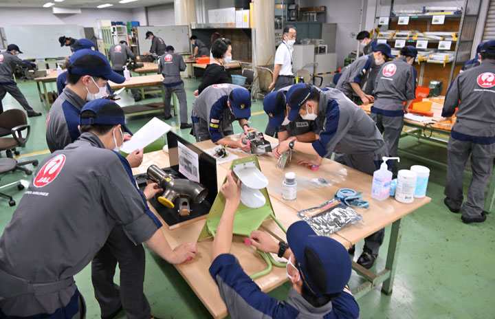 技能五輪に出場するJALECの整備士たち=22年7月27日 PHOTO: Tadayuki YOSHIKAWA/Aviation Wire