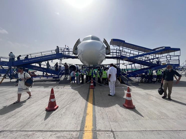 インドのインディゴ(IGO/6E)は、前方2カ所と後方1カ所から乗客を降機させる「3点式降機システム」を現地時間8月4日から導入した。同システムの導入により、定時性の向上を図る。