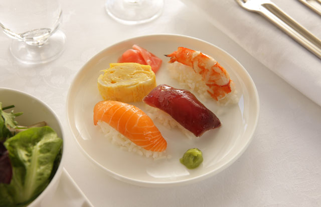 機内で選べるメニューに加え、寿司など「セレクト・オン Q-EAT」限定メニューも提供。メニューは、モダン・オーストラリア料理の第一人者、ニール・ペリー氏が監修した。