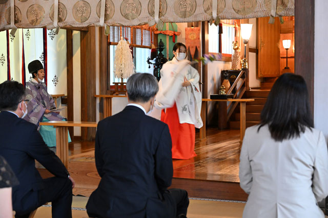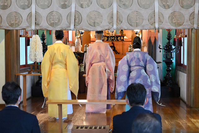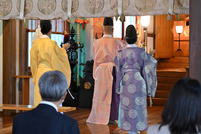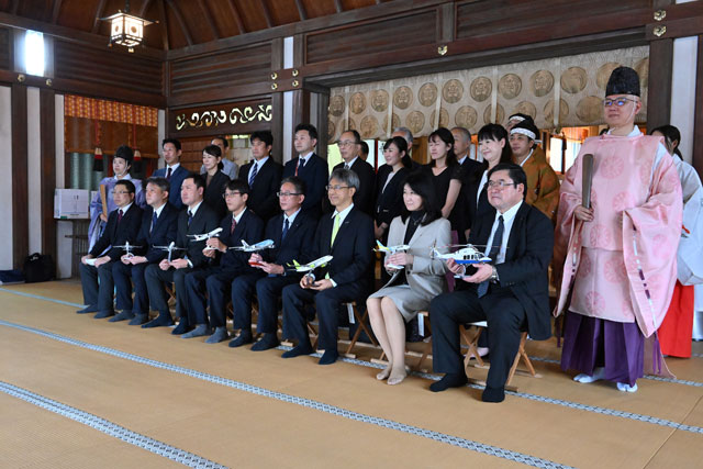 祈願祭で行われた神事では、全日本空輸(ANA/NH)、日本航空(JAL/JL、9201)、ソラシドエア(SNJ/6J)、スカイマーク(SKY/BC)、エア・ドゥ(ADO/HD)、スターフライヤー(SFJ/7G、9206)、東邦航空、朝日航洋の順に社員らが玉串を奉納した。