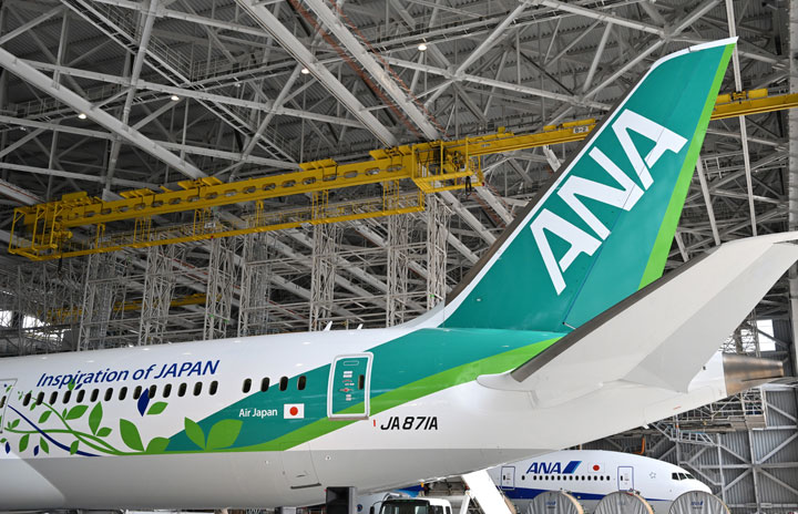 4年ぶり緑のANA機グリーンジェット、サメ肌でCO2削減