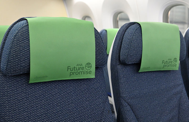 ANAグリーンジェットの東レ製ヘッドレストカバー=22年10月3日 PHOTO: Tadayuki YOSHIKAWA/Aviation Wire