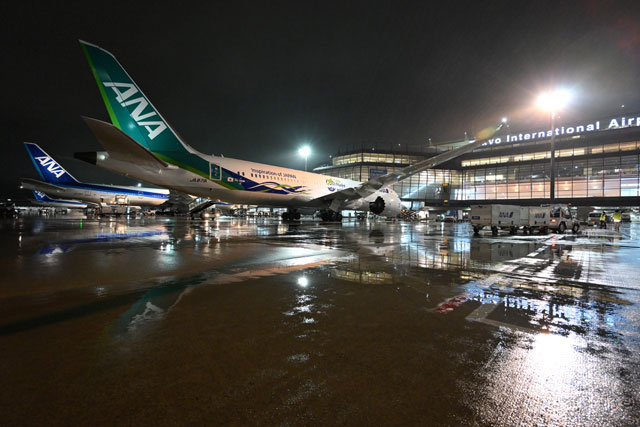 羽田空港で出発を待つANA Green jet(手前)=22年10月5日 PHOTO: Tadayuki YOSHIKAWA/Aviation Wire