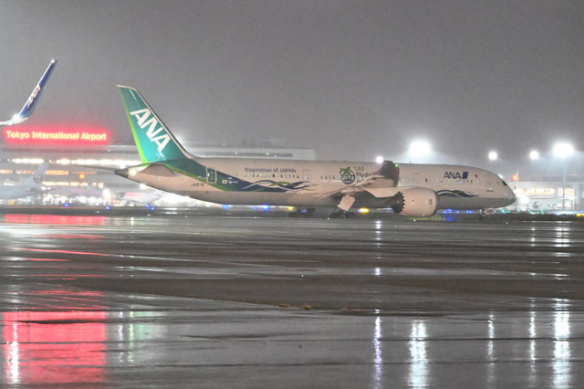 羽田空港のC滑走路(RWY34R)へ向かうANA Green jet初便のサンフランシスコ行きNH108便=22年10月5日 PHOTO: Tadayuki YOSHIKAWA/Aviation Wire