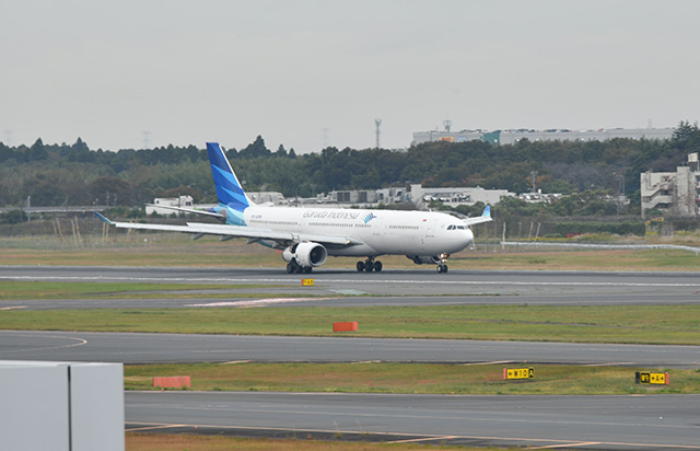 成田空港に着陸したガルーダ・インドネシア航空のデンパサール発GA880便再開初便=22年11月1日 PHOTO: Yusuke KOHASE/Aviation Wire