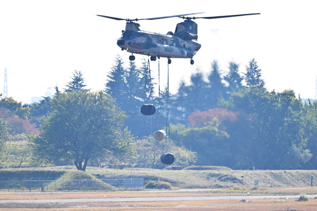 入間航空祭で展示飛行するCH-47J=22年11月3日 PHOTO: Tadayuki YOSHIKAWA/Aviation Wire