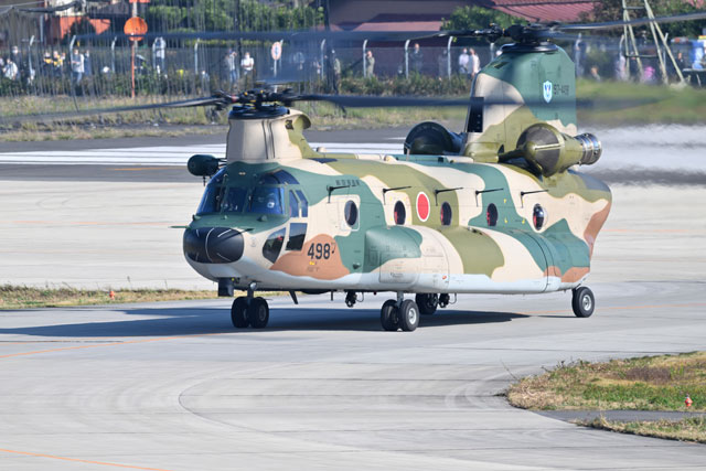 入間航空祭で展示飛行を終えたCH-47J=22年11月3日 PHOTO: Tadayuki YOSHIKAWA/Aviation Wire