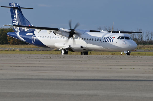 新潟空港のスポットへ向かうトキエアのATR72-600初号機=22年11月5日 PHOTO: Tadayuki YOSHIKAWA/Aviation Wire