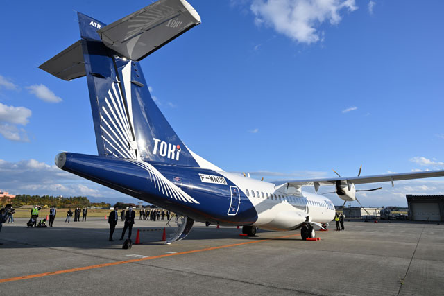 新潟空港に到着したトキエアのATR72-600初号機=22年11月5日 PHOTO: Tadayuki YOSHIKAWA/Aviation Wire