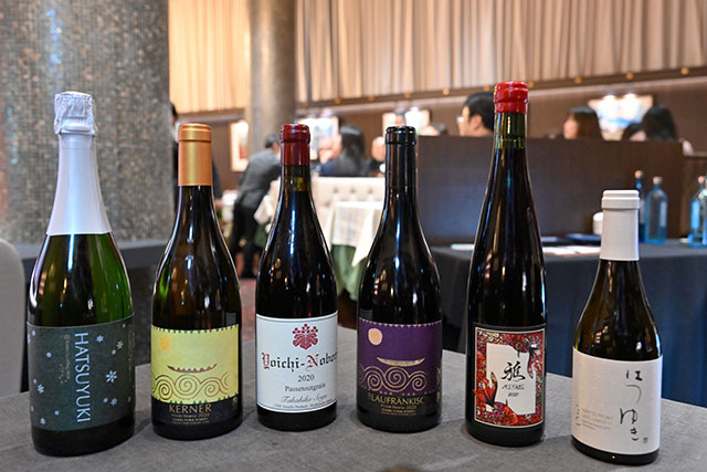 「旅するメーカーズディナー」で提供された仁木町と余市町のワイン=22年11月23日 PHOTO: Tadayuki YOSHIKAWA/Aviation Wire