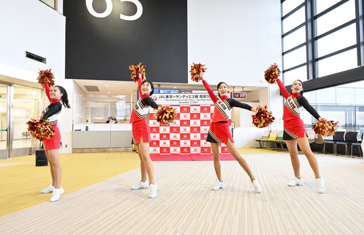 JAL、成田-サンディエゴ10周年 CA「JETS」チアダンス披露