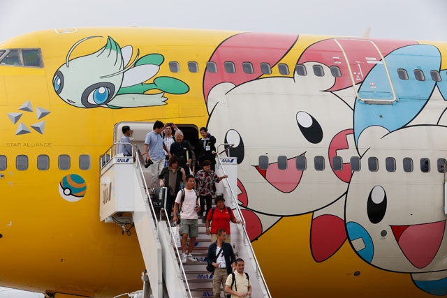 ポケモンジェット最終便からタラップで降機する乗客ら=9月30日 PHOTO: Tatsuyuki TAYAMA/Aviation Wire