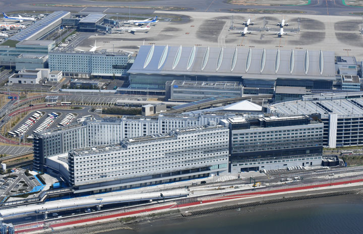 最初の緊急事態宣言発出から一夜明けた開業前のヴィラフォンテーヌ羽田空港(ヘリから空撮)=20年4月8日 PHOTO: Tadayuki YOSHIKAWA/Aviation Wire