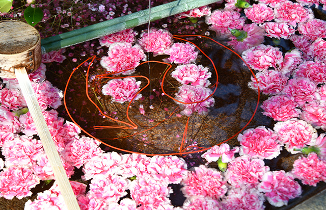 穴守稲荷神社入り口の水受けに宮司がしつらえた鶴丸=23年2月17日 PHOTO: Yusuke KOHASE/Aviation Wire