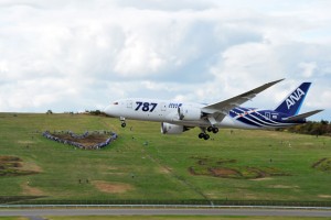 福島空港を低空で通過する全日空の787=11年11月 PHOTO: Tadayuki YOSHIKAWA/Aviation Wire