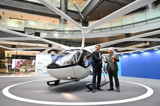 ・JAL出資の独Volocopter、2人乗り”空飛ぶクルマ”を大阪で日本初公開(23年3月12日)