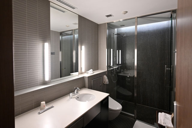 JALの羽田空港国際線新サクララウンジのシャワールーム=23年3月24日 PHOTO: Tadayuki YOSHIKAWA/Aviation Wire