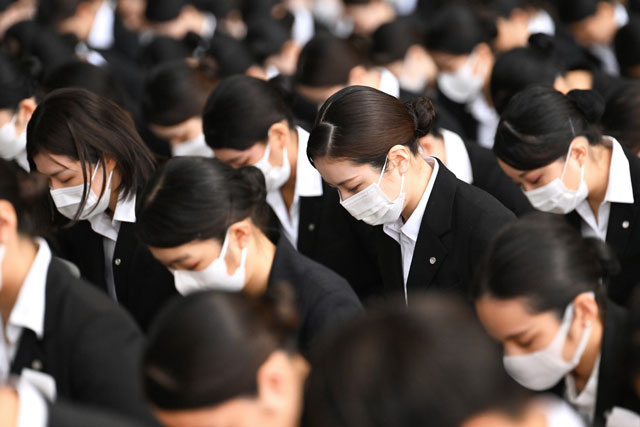 JAL赤坂社長「一人でも欠けてはできない仕事」入社式で紙飛行機飛ばす
