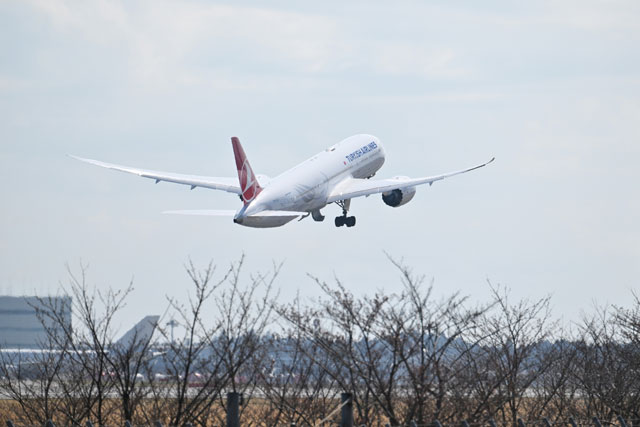 スカイバスから見た成田空港を離陸するターキッシュエアラインズの787=23年3月20日 PHOTO: Tadayuki YOSHIKAWA/Aviation Wire