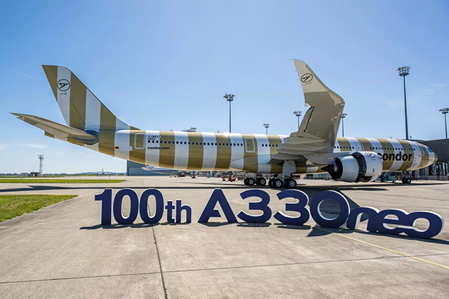 納入100機目のA330neoとなったコンドル航空のA330-900(エアバス提供)