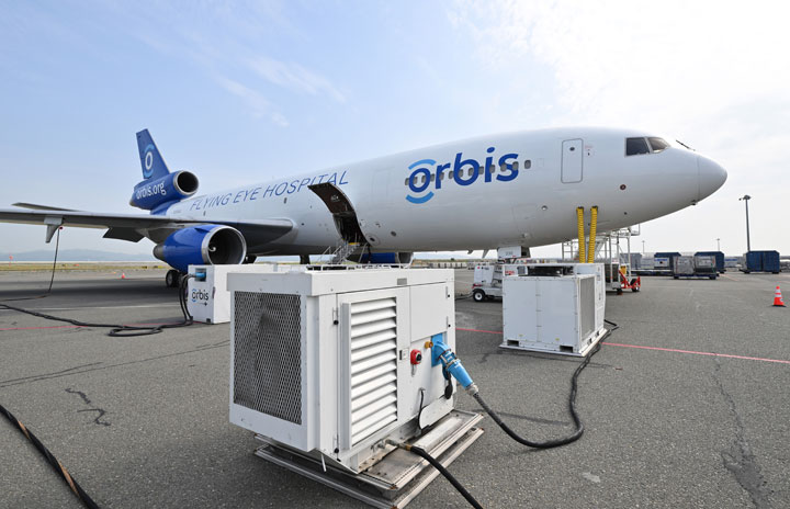 発電機などを自前で用意するオービスのMD-10「フライング・アイ・ホスピタル」=23年4月21日 PHOTO: Tadayuki YOSHIKAWA/Aviation Wire
