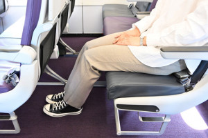 足もとが広いピーチのA321LR。大丸梅田店でモックアップを5月7日まで展示=PHOTO: Tadayuki YOSHIKAWA/Aviation Wire