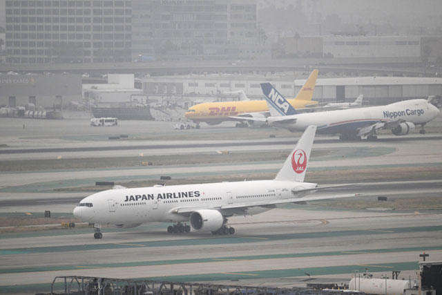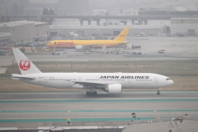 ロサンゼルスを出発するJALの777-200ER初号機JA701J のフェリーフライトJL8134便=23年5月18日 PHOTO: Tadayuki YOSHIKAWA/Aviation Wire
