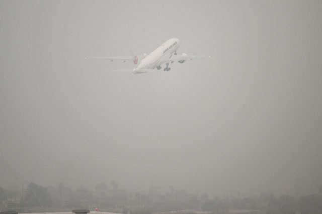 ロサンゼルスを離陸するJALの777-200ER初号機JA701J のフェリーフライトJL8134便=23年5月18日 PHOTO: Tadayuki YOSHIKAWA/Aviation Wire
