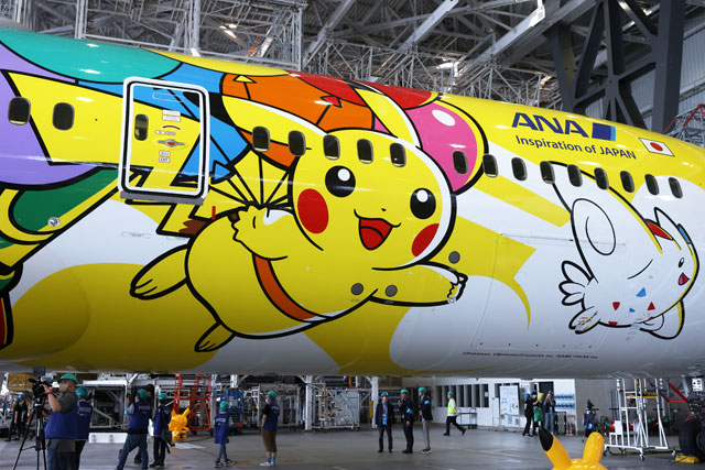全日本空輸(ANA/NH)が7年ぶりにポケットモンスター(ポケモン)の人気キャラクター「ピカチュウ」を描いた特別塗装機「ピカチュウジェットNH」(ボーイング787-9型機、登録記号JA894A)が国際線に就航した。約5年間運航する予定で、6月3日に羽田空港の格納庫でお披露目され、翌4日の羽田発バンコク行きNH847便が初便となった。
