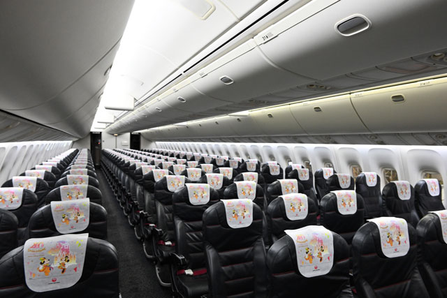 羽田空港でお披露目されたJAL Colorful Dreams Expressの普通席=23年6月9日 PHOTO: Tadayuki YOSHIKAWA/Aviation Wire