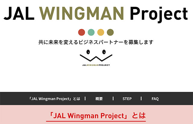 JALの社外向けビジネスコンテスト「JAL Wingman Project」のウェブサイト