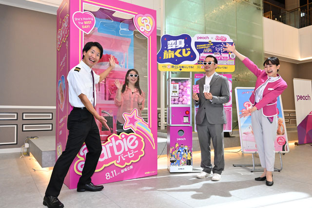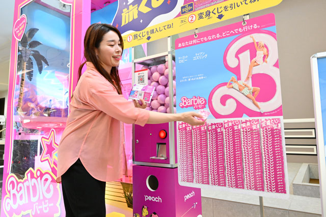 ピーチ・アビエーション(APJ/MM)は7月7日、大阪・心斎橋PARCO(パルコ)で映画『バービー』とコラボレーションした「変身旅くじ」の販売を始めた。映画のテーマにちなみ、旅を通じて新しい自分に変身する体験を提供するという。