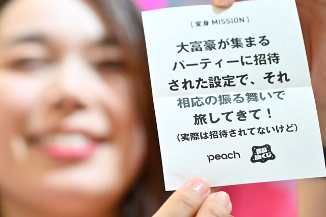 無料の「変身くじ」に書かれたミッション=23年7月7日 PHOTO: Tadayuki YOSHIKAWA/Aviation Wire