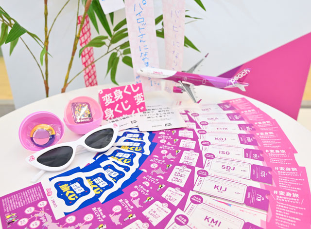 ピーチが心斎橋PARCOで販売する「変身旅くじ」と無料の「変身くじ」=23年7月7日 PHOTO: Tadayuki YOSHIKAWA/Aviation Wire
