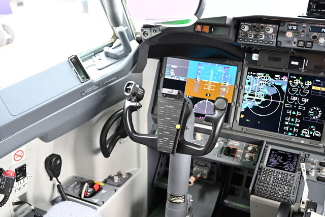 パリ航空ショーで公開された737-10飛行試験機のコックピット=23年6月18日 PHOTO: Tadayuki YOSHIKAWA/Aviation Wire