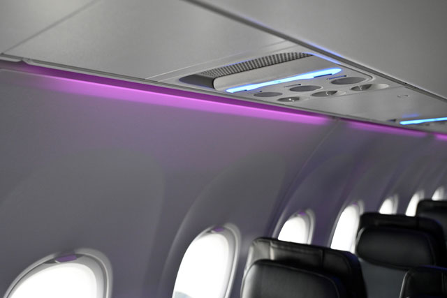 スターフライヤーのA320neoのLED照明=23年7月4日 PHOTO: Tadayuki YOSHIKAWA/Aviation Wire