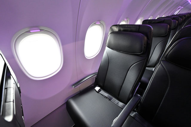 スターフライヤーのA320neoのシート=23年7月4日 PHOTO: Tadayuki YOSHIKAWA/Aviation Wire