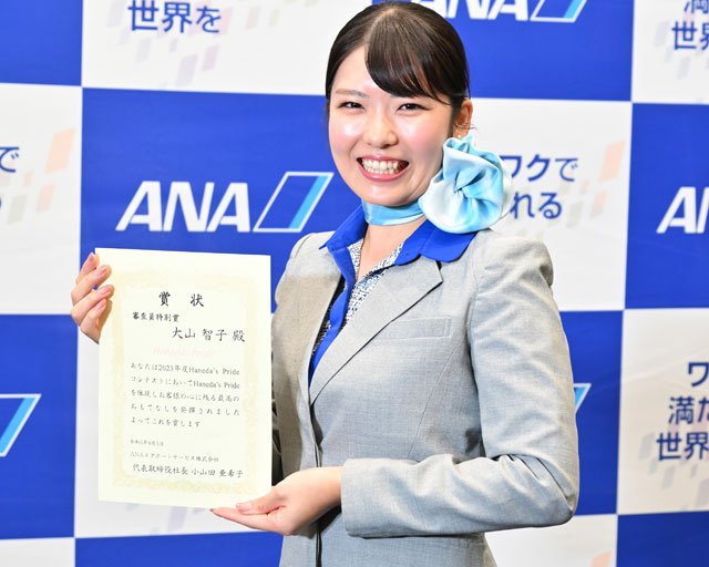 ANAの第7回Haneda’s Prideコンテストで審査員特別賞を受賞した大山さん=23年9月5日 PHOTO: Tadayuki YOSHIKAWA/Aviation Wire