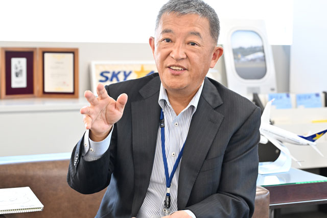 ANAの経験をそのまま持ち込むのは「強みがなくなってしまいます」と話すスカイマークの荒牧専務=PHOTO: Tadayuki YOSHIKAWA/Aviation Wire