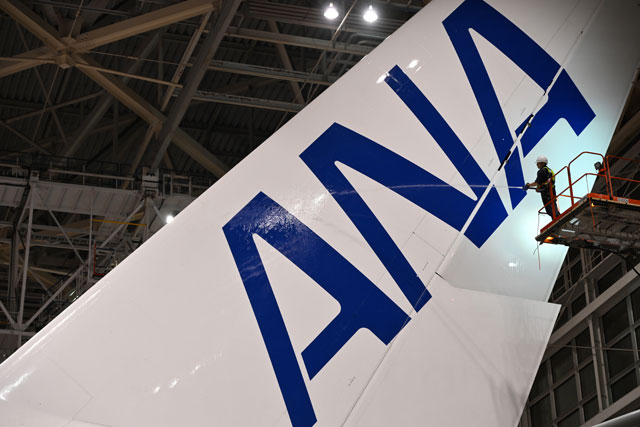 ANAのA380、オレンジ3号機初の機体洗浄 10/20就航前に2年の汚れ落とす